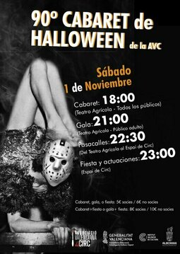 Una nit de TERROR amb espectacles d'aeris, foc, actuacions i DJs!!! I UNA GRAN PROMOCIÓ DE CABARET+FESTA o GAL·LA+FESTA a 8€ socixs/ 10€ no socixs. Pots aconseguir les teues entrades a través d'este esdeveniment. Si eres socix hauràs d'ensenyar el teu carnet de l'AVC juntament amb l'entrada. Per a estalviar en paper pots portar la teua entrada guardada en el mòbil. Si vols… VINE DISFRAZADX!